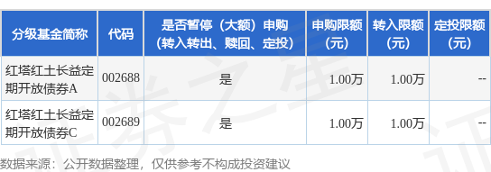 本站消息,9月26日红塔红土基金管理有限公司发布《红塔红土长益定期开放债券型证券投资基金暂停大额申购、大额转换转入公告》。公告中提示,为维护基金份额持有人利益,自2025年10月9日起红塔红土长益定期开放债券型证券投资基金暂停大额申购、大额转换转入,申购、转换转入上限金额为1.0万元,下属分级基金调整明细如下: